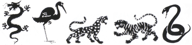 Nach und nach werden die Kinder an die Stile der fünf Tiere herangeführt. Jedes der fünf Tiere hat seinen eigenen Charakter und das nicht nur nicht nur in der äußeren Form.
